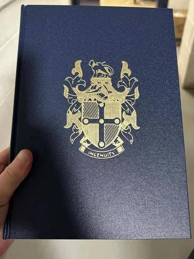 The finished result was a beautiful bespoke book, with the crest proudly shining out in luxurious gold foil. A truly unique and timeless memento for generations to come.